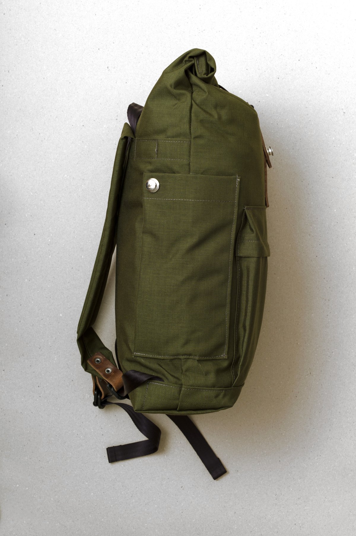 German Cordura 1000 + LOXX fasterner + Gutermann Tera 40 thread + security strap + Kroko Zipper + ITW Nexus D rings + swiss cow leather veg tanned in Thun